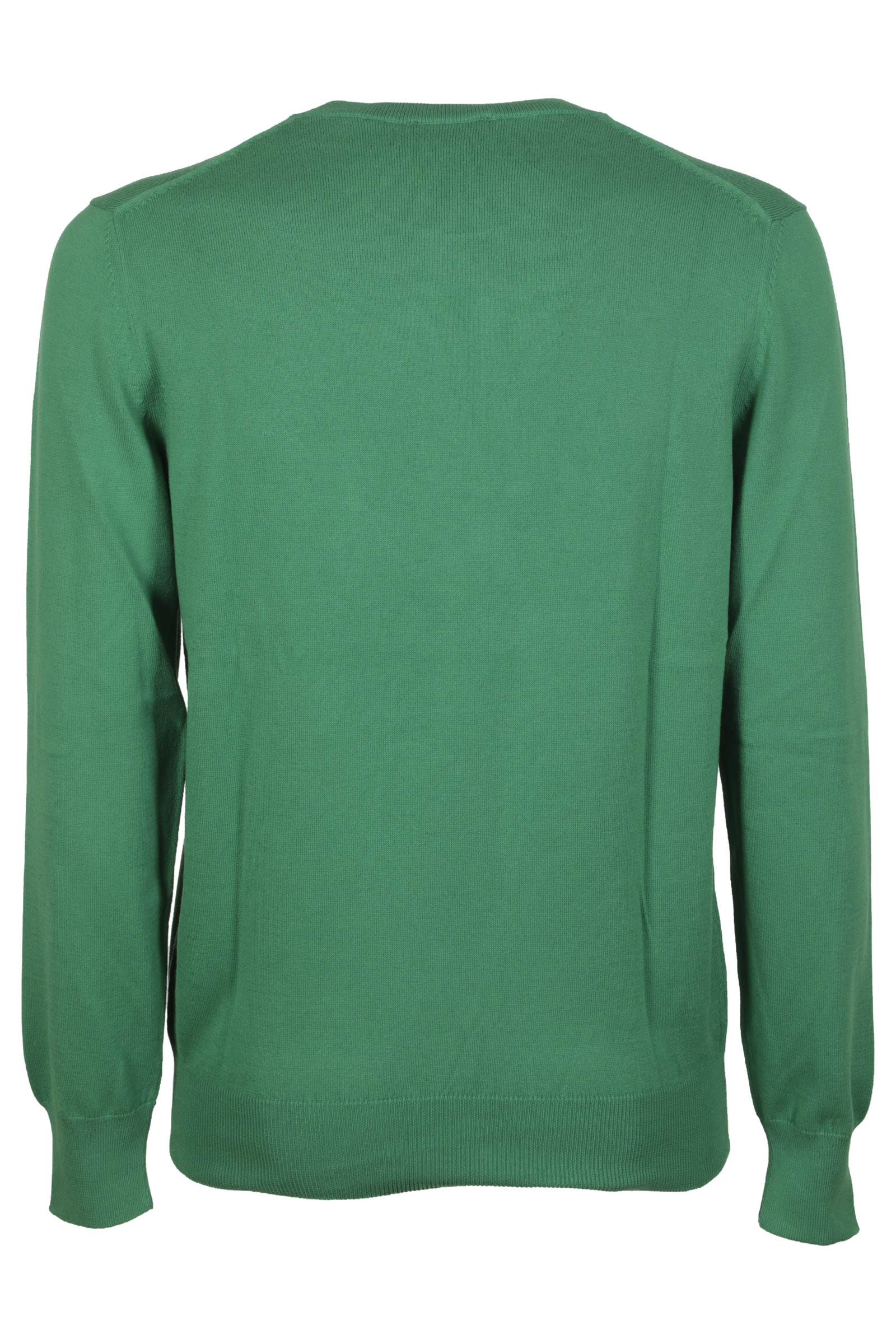 A.P.C. Green cotton roundneck , long sleeves, ribbed edges, blue logo on the chest.