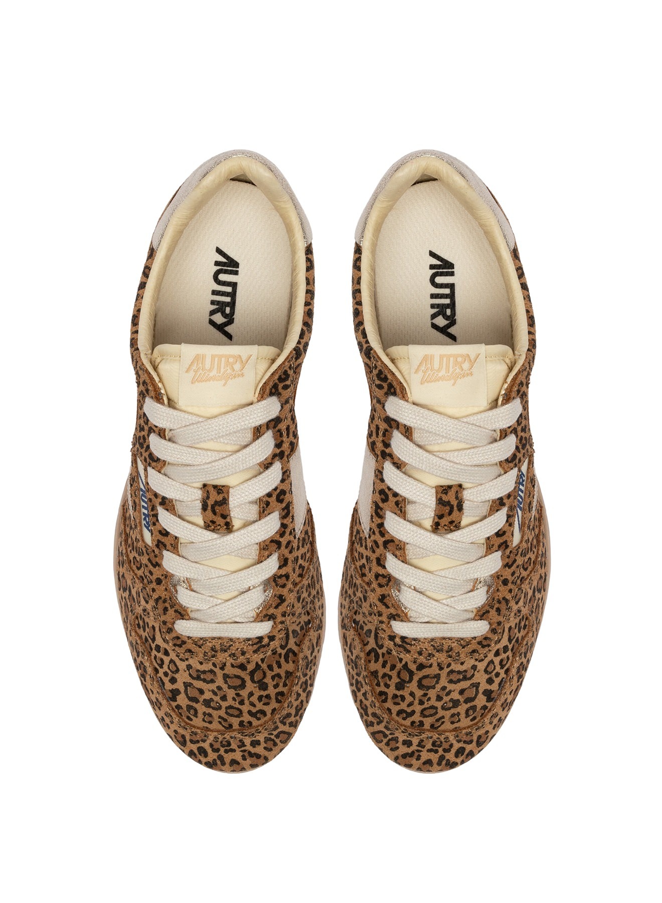 Autry women`s Windspin Low sneakers in suede with a leopard print, featuring a 1960s-inspired design. Lightweight, durable, and sophisticated, they guarantee comfort and a perfect grip thanks to the thin rubber sole.