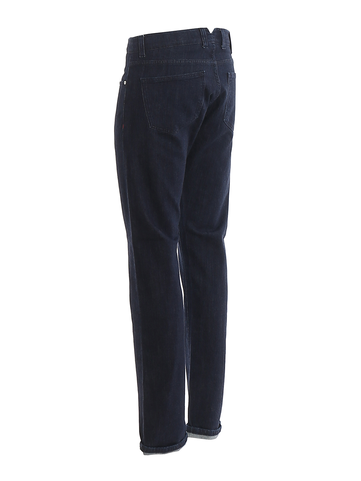 Isaia cotton denim, dark blue color, 5 pockets model with skinny fit.