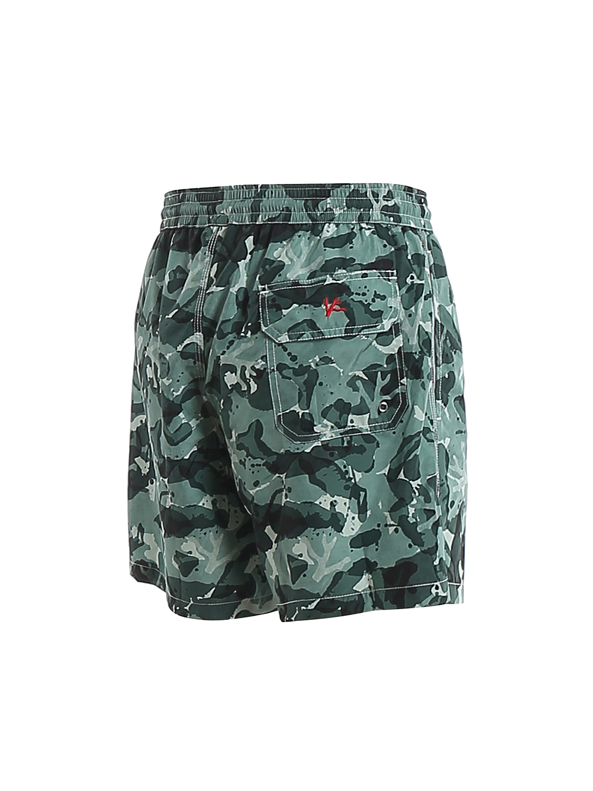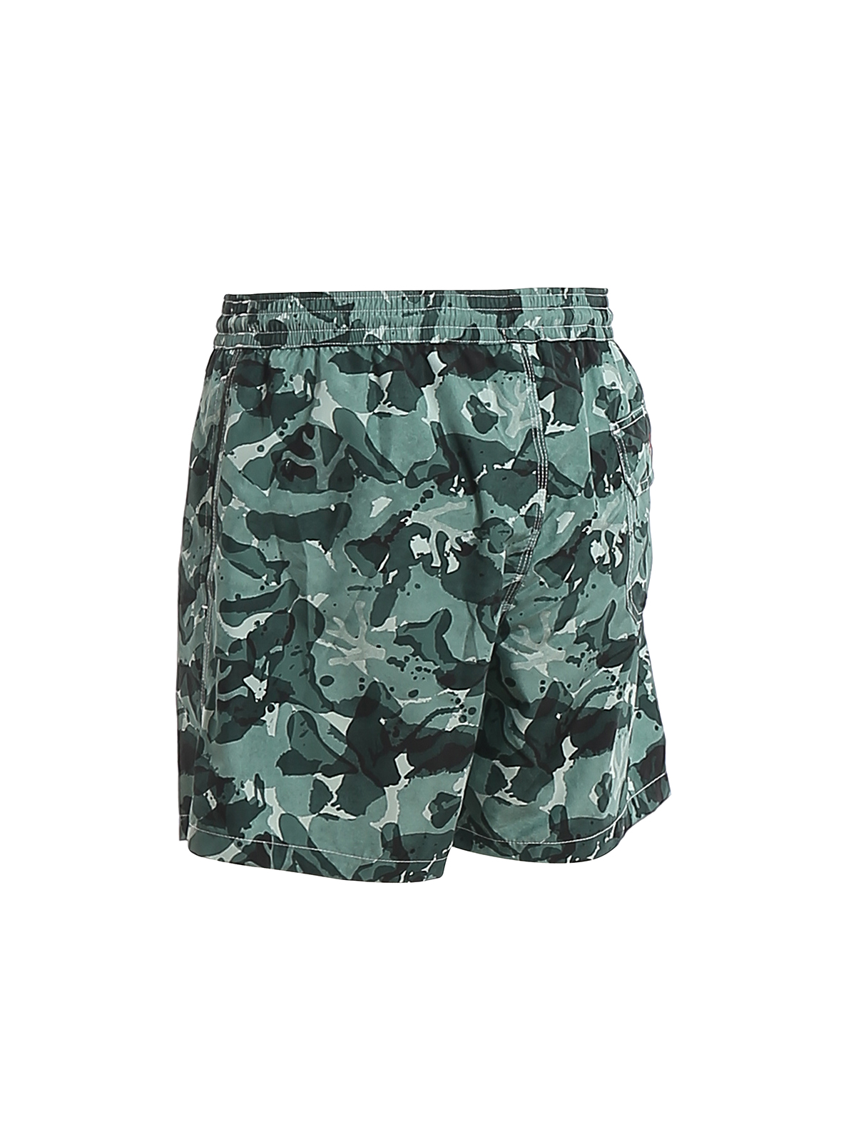 Isaia swimsuit, made of waterproof fabric, with camouflage pattern in shades of green, elastic waistband and adjustable drawstring.