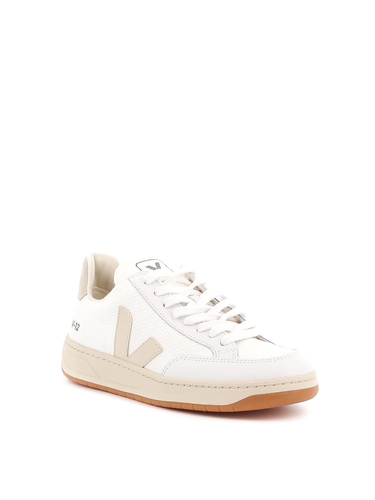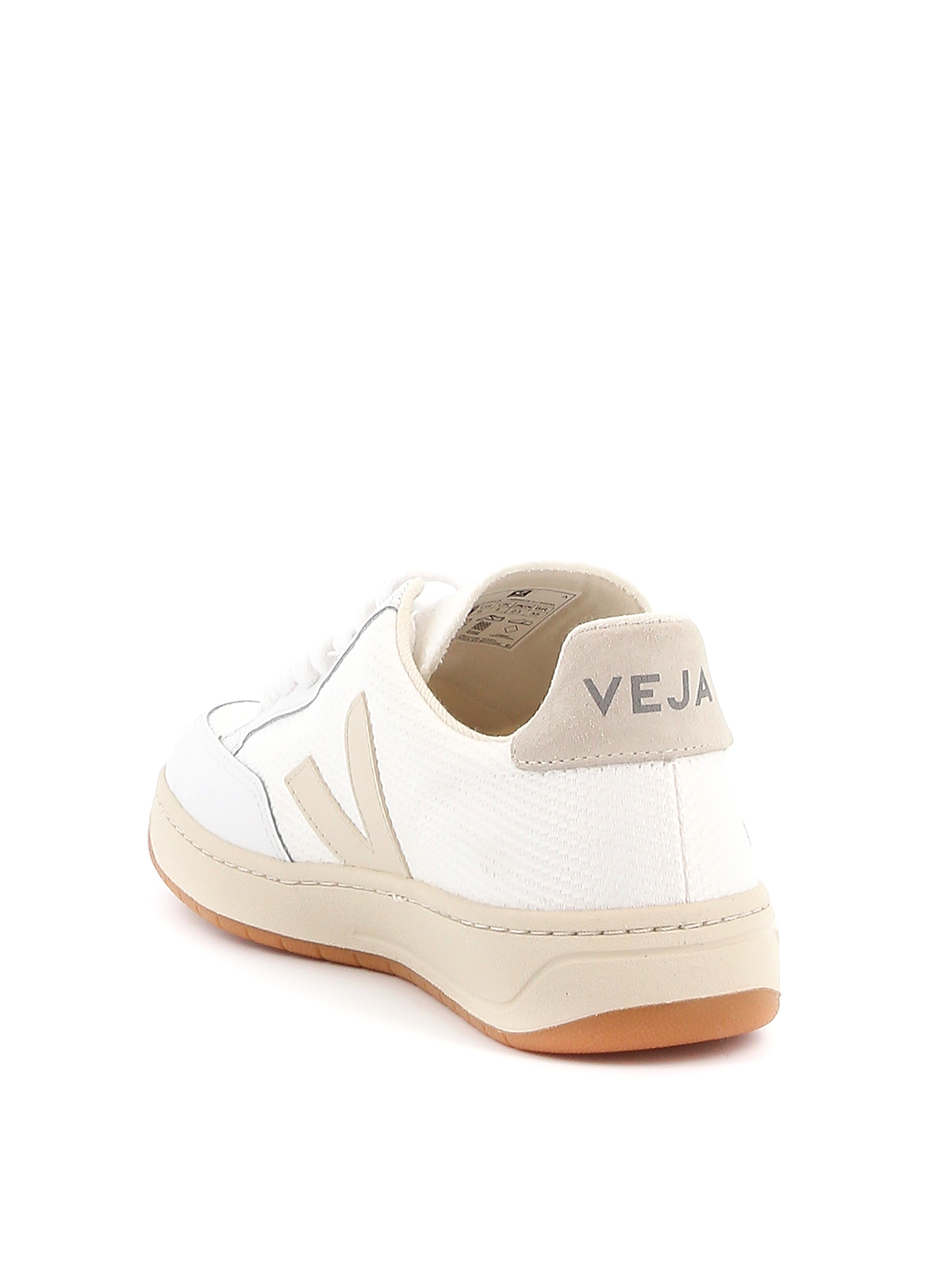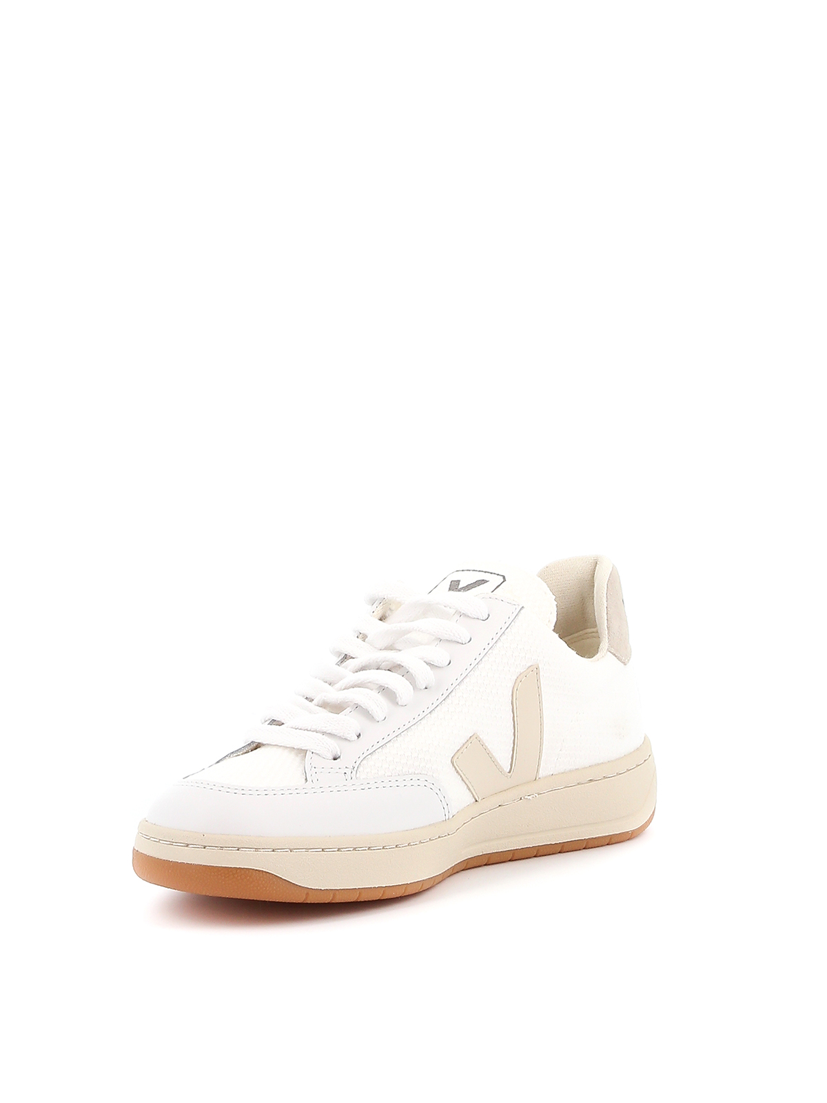 Veja sneaker in technical fabric and white leather, side logo detail in beige leather, beige insert on the back, rubber sole.