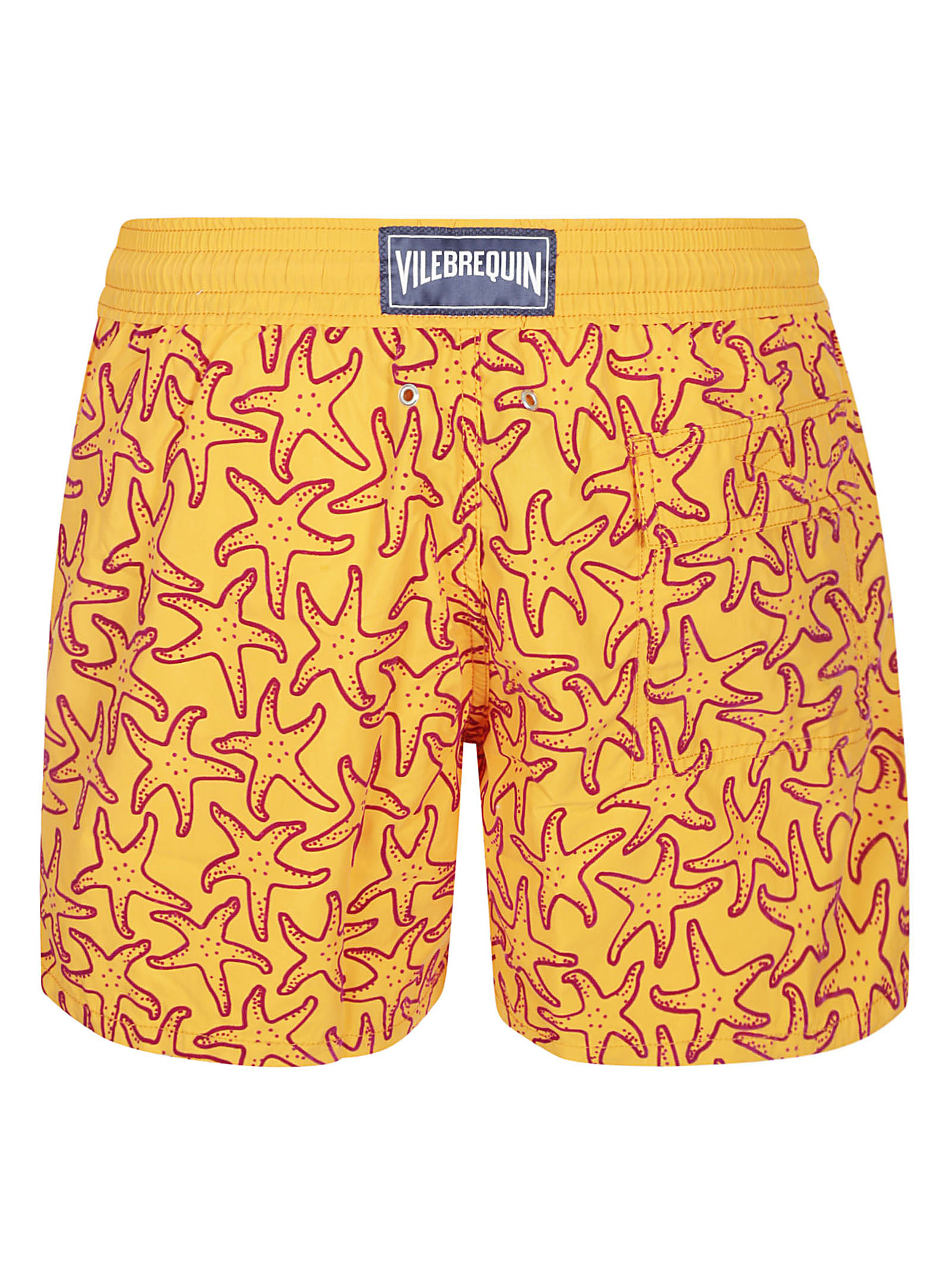 Vilebrequin Orange Swimsuit, patterned insert, elastic waist with drawstring, back pocket, logo patch.