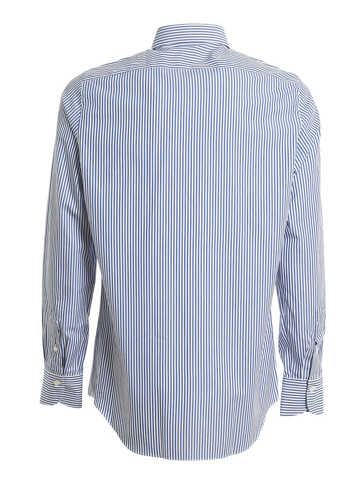 Finamore Camicia cotone, fantasia a righe bianca e blu, collo francese, bottoni in madreperla, polsini con bottoni, slim fit.