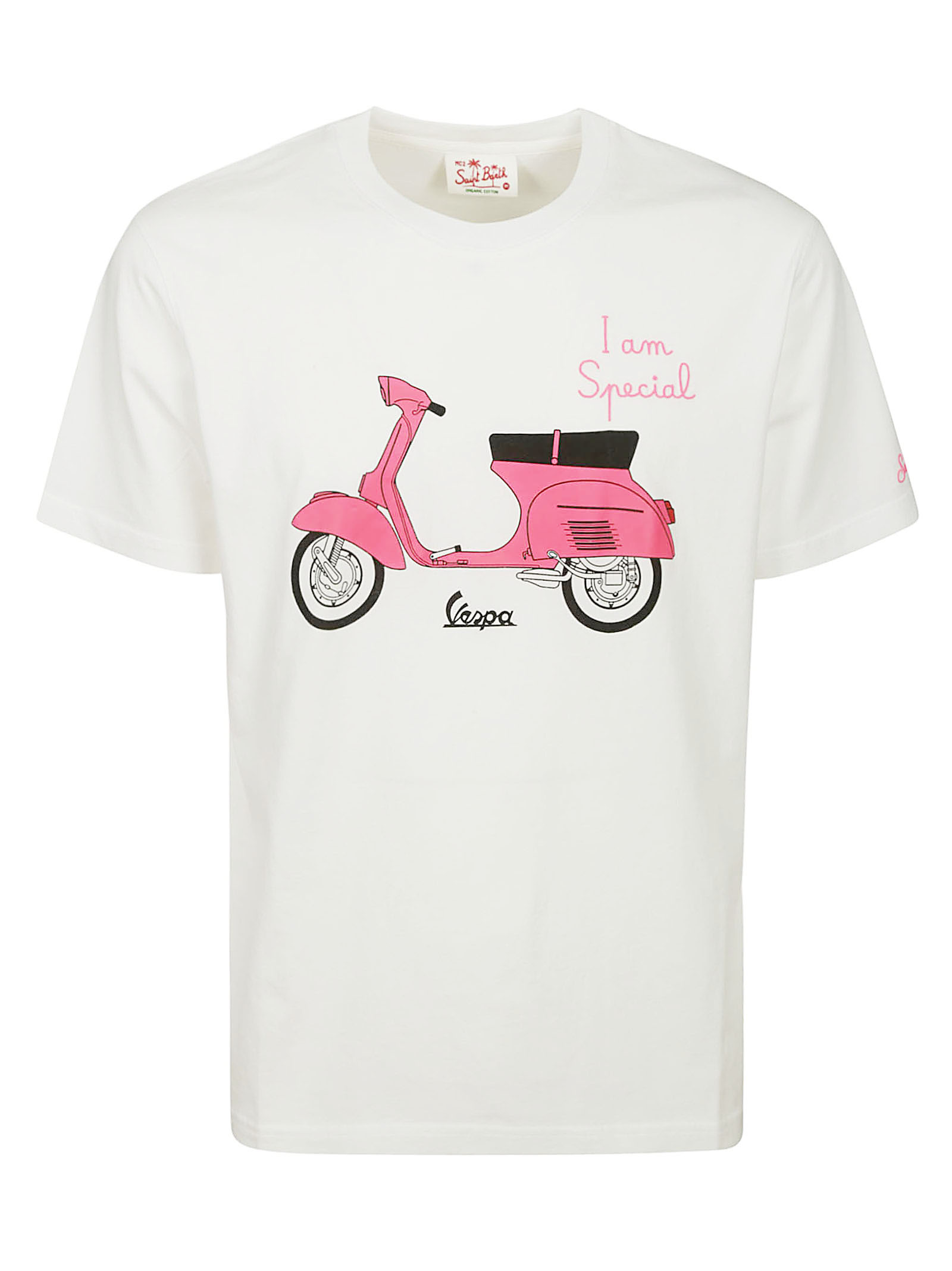 MC2 Saint Barth T-shirt in cotone bianca, mezze maniche, logo ricamato sulla manica, stampa frontale.