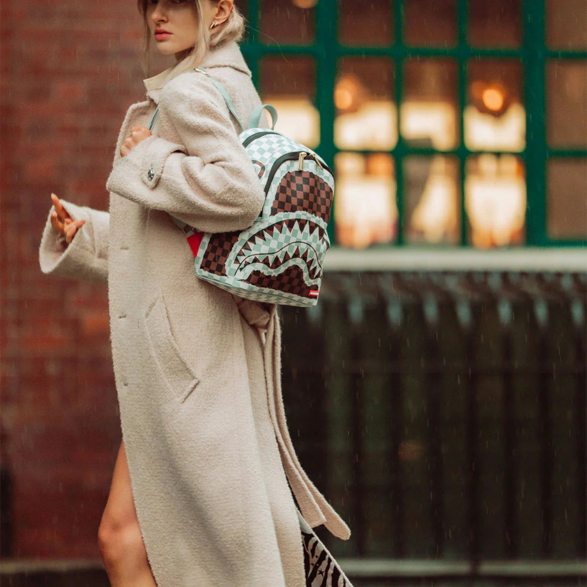Sprayground | Cream And Brown Tear Check Savage Backpack