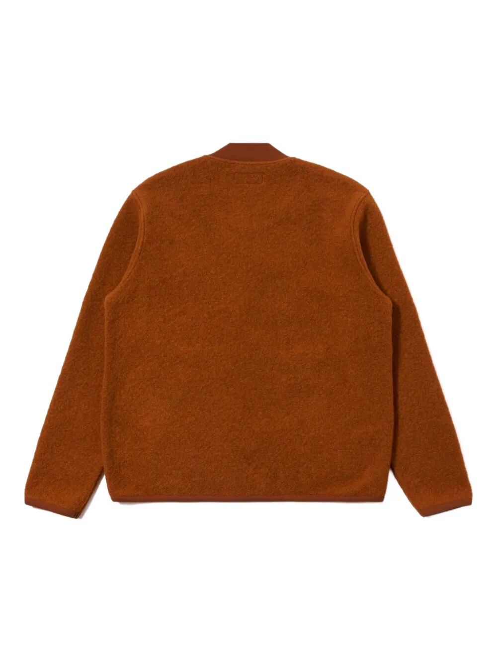 Giacca bomber dal taglio regolare in morbido panno di lana con una calda tonalità arancio ruggine. Dotata di zip a doppio cursore, due tasche frontali a filetto e rifiniture in costina di cotone su collo, polsini e fondo. Ideale come strato intermedio per l’autunno e l’inverno, offre comfort e stile senza compromessi.