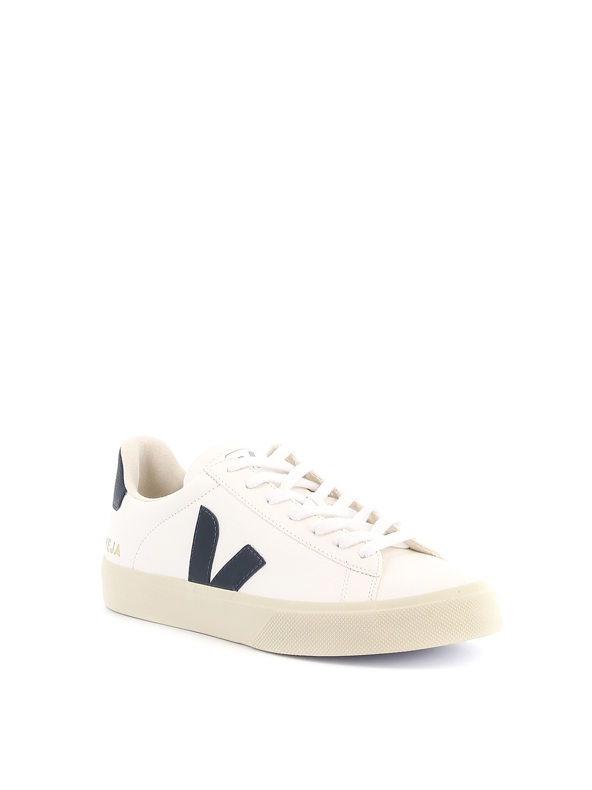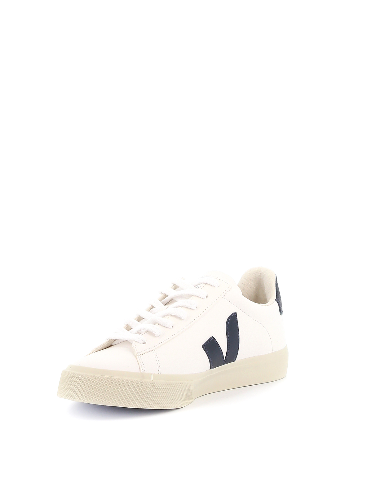 Veja sneakers in pelle bianca, dettaglio logo in pelle blu scuro laterale e sul retro, suola in gomma.