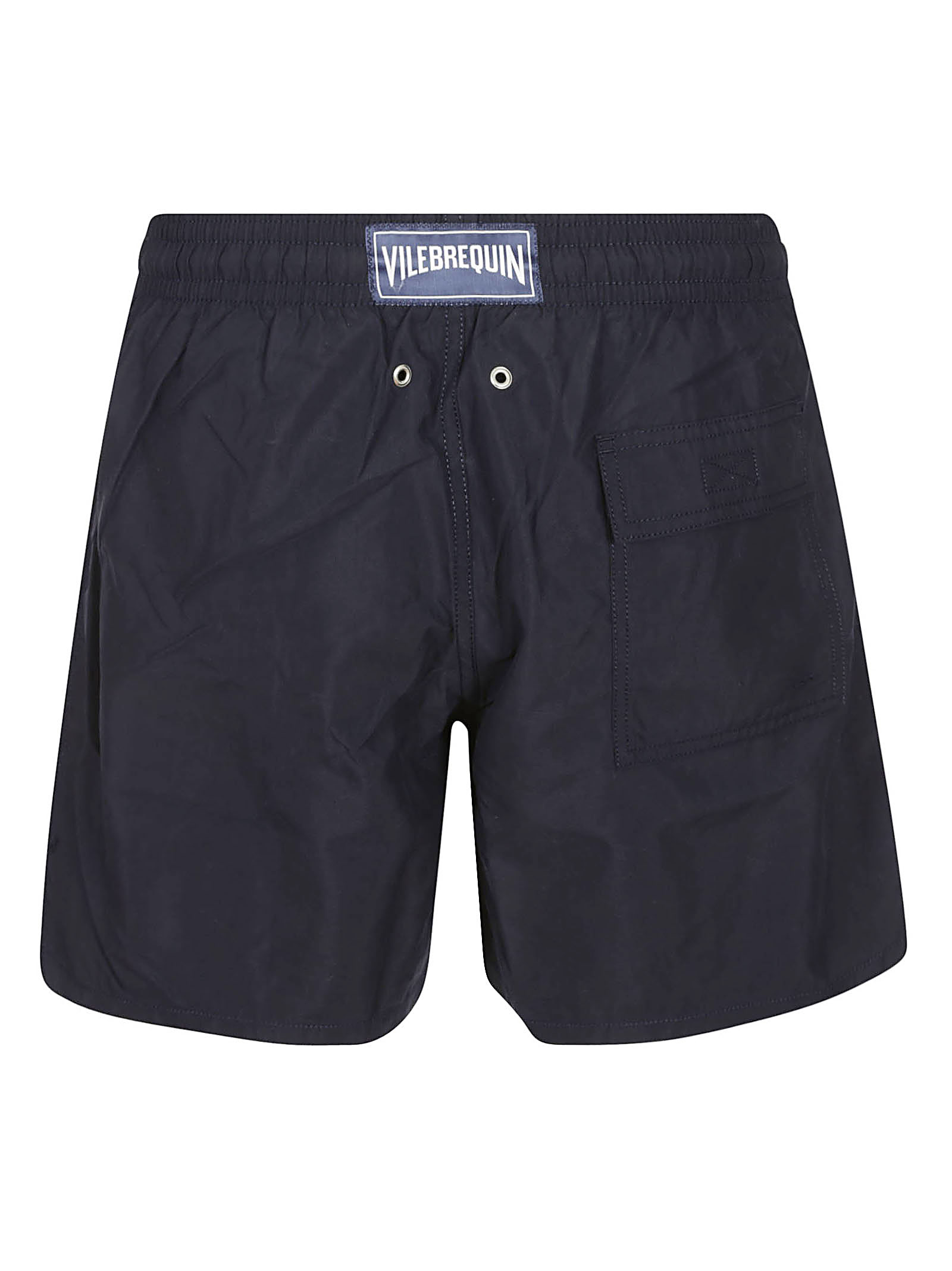 Vilebrequin Costume da bagno blu, vita elastica con coulisse, tasca posteriore, patch logo.