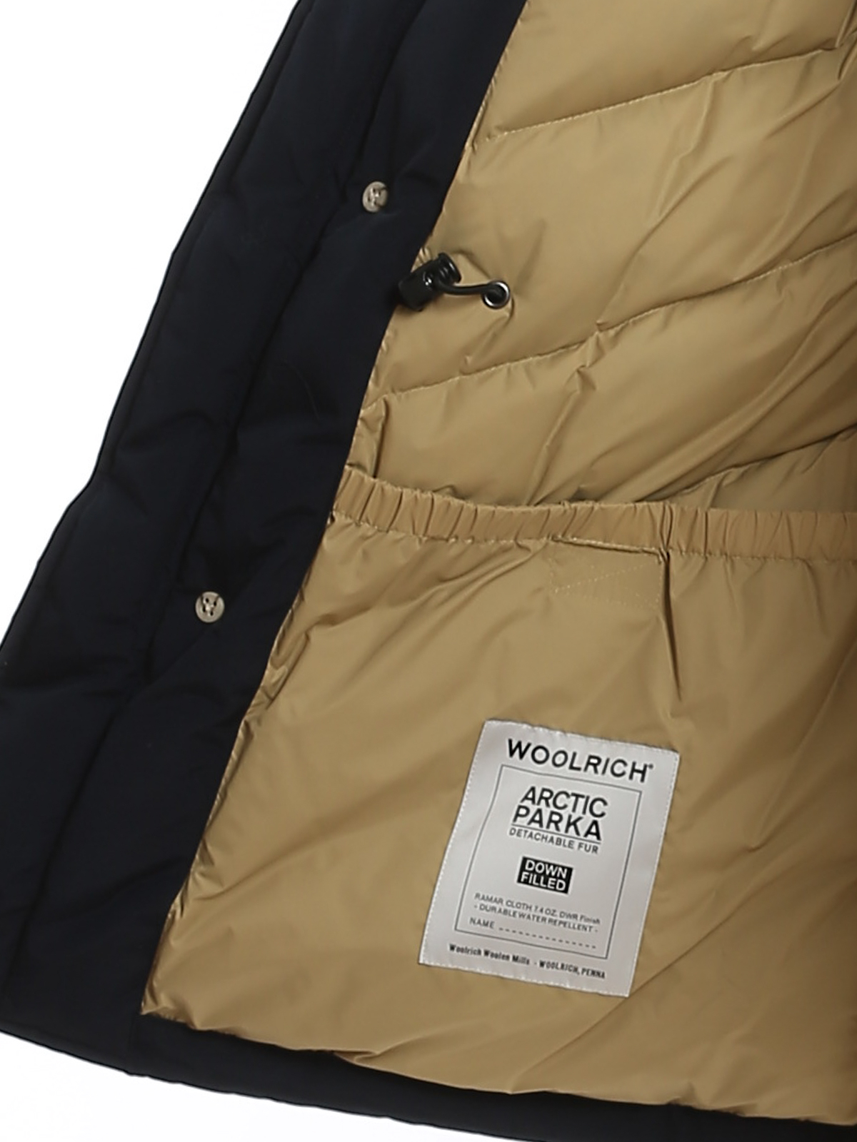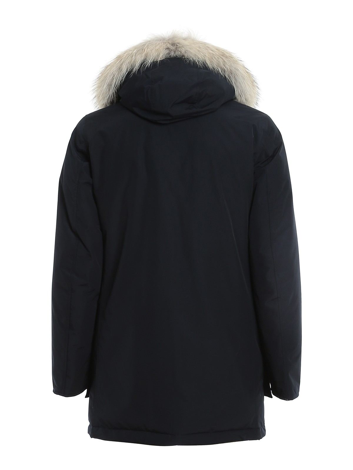 Woolrich Arctic Parka blu, realizzato in tessuto idrorepellente, resistente a neve, pioggia e vento, vestibilità regular, collo con cappuccio e inserto pelliccia rimovibile, chiusura con zip coperta da patta e bottoni, tasche scaldamani al petto con patta, tasche frontali con patta e bottone, logo ricamato al collo, imbottitura in piuma 80/20.